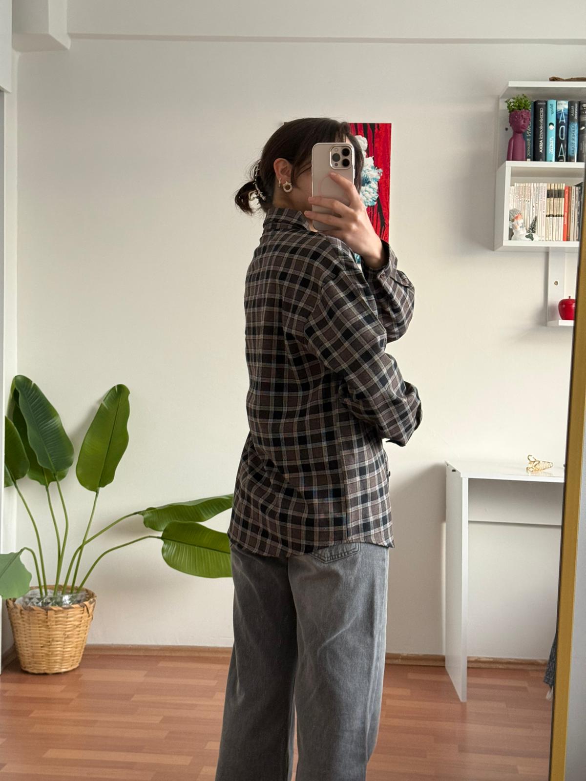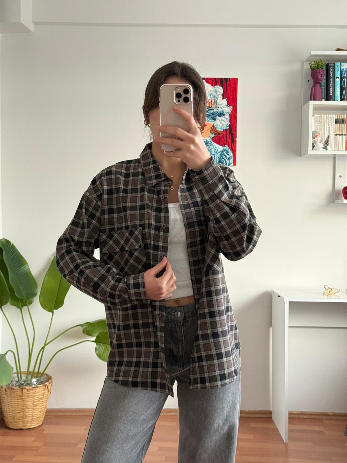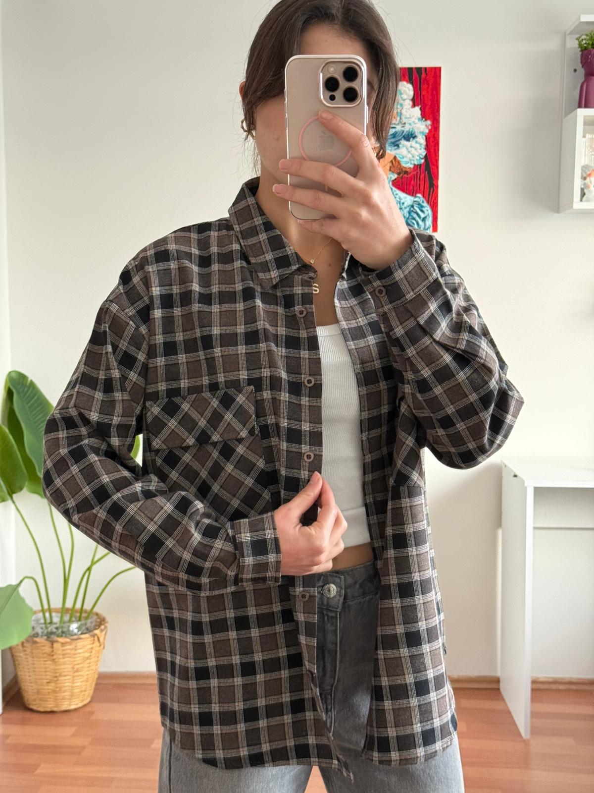 Cep Detay Ekose Gömlek - Kahve/Siyah