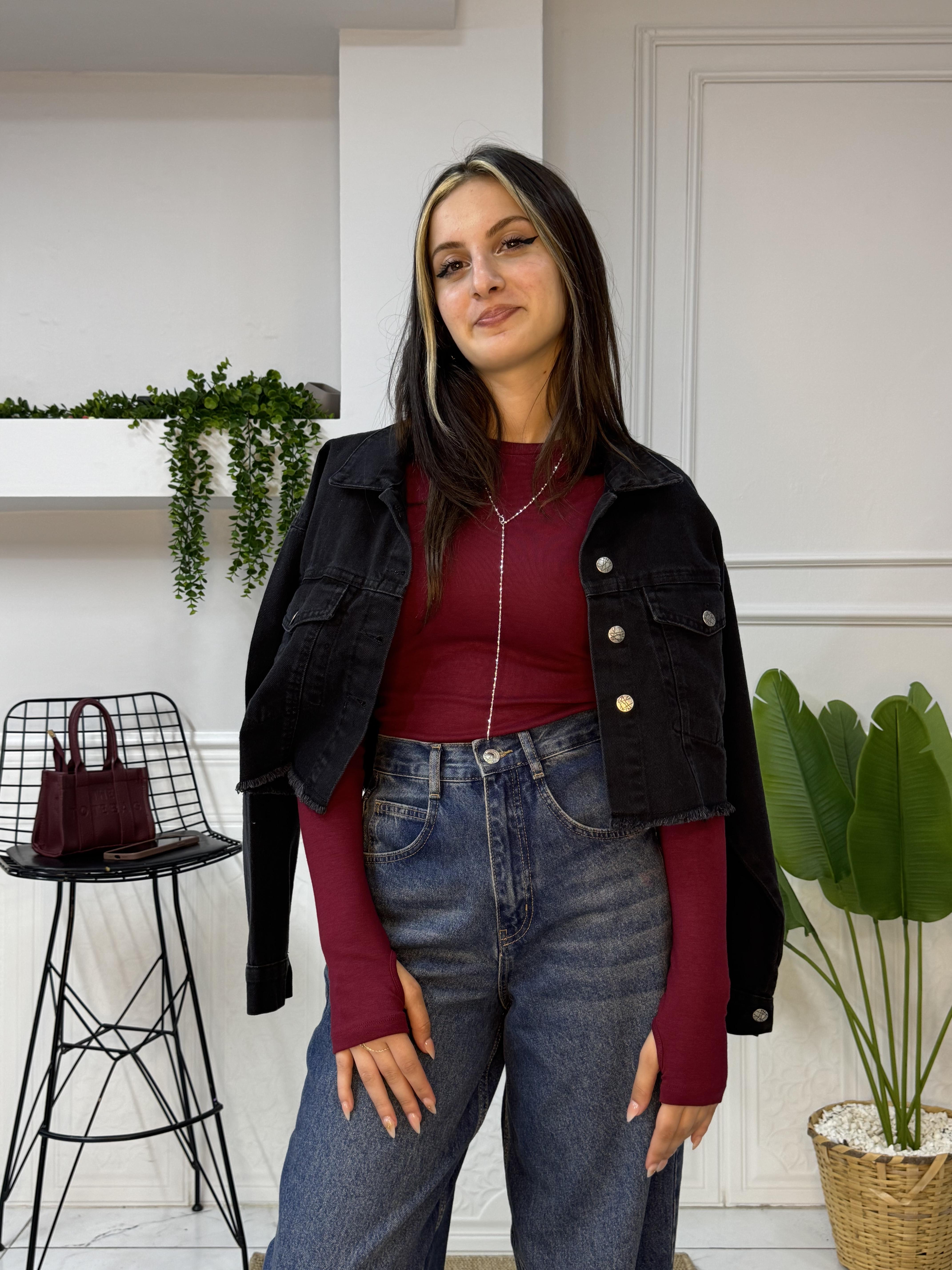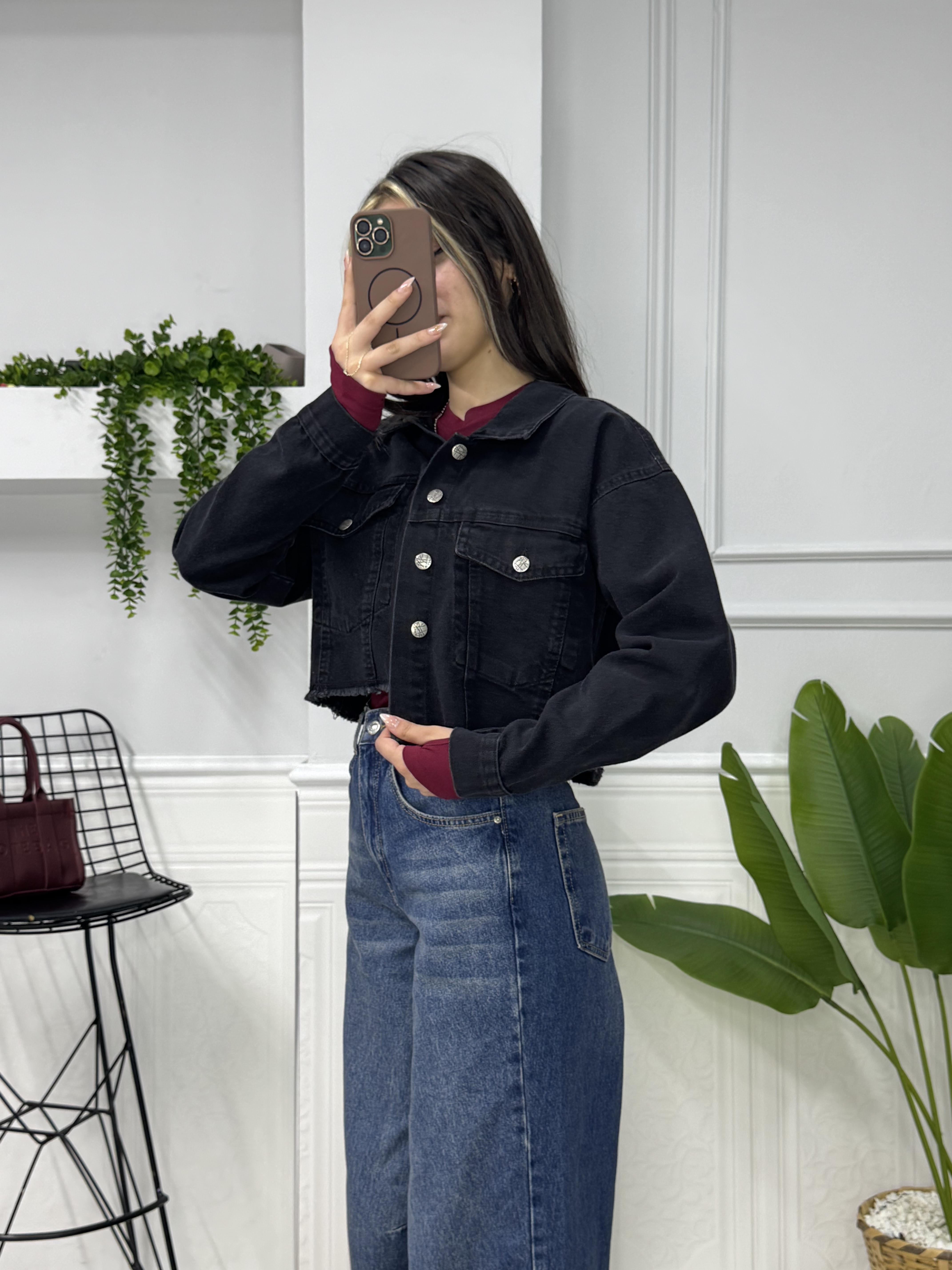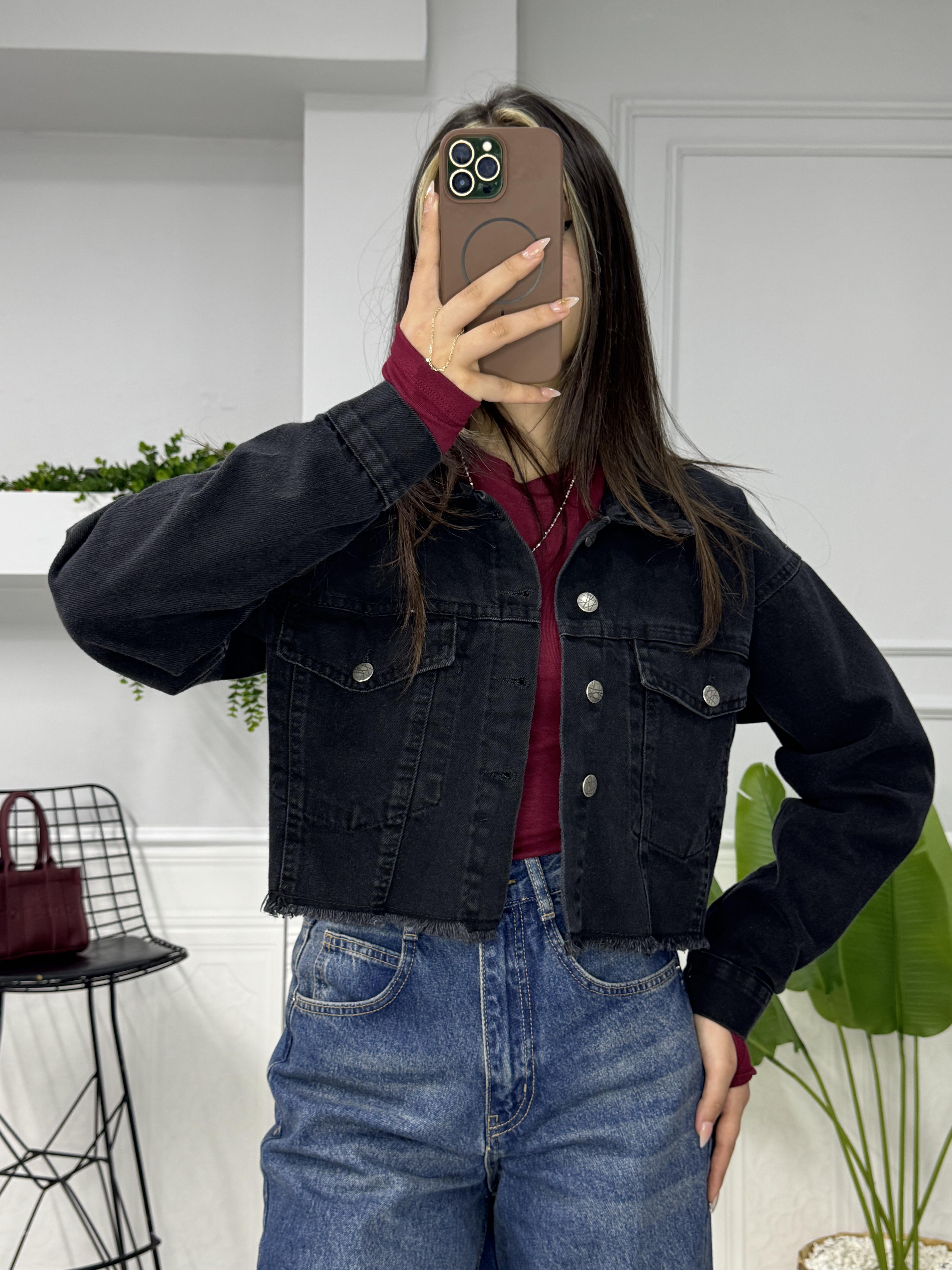 ✨ Tarzına güçlü bir dokunuş katacak Cropped Siyah Kot Ceket ile stilini tamamla!