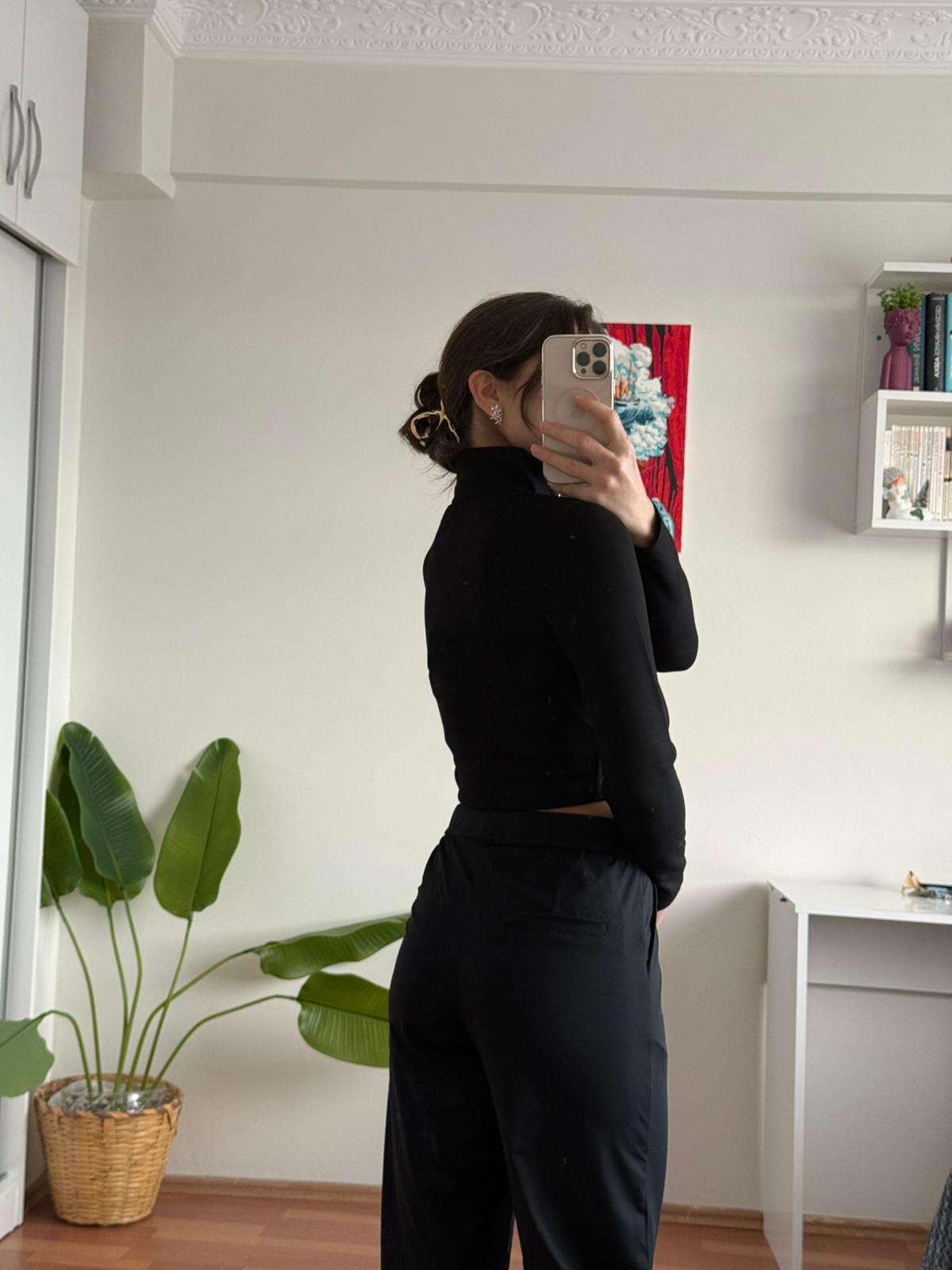 - Renk: Modern ve şık bir görünüm sağlamak için klasik siyah tonları kullanılmıştır, böylece her türlü kıyafetle uyum sağlar.