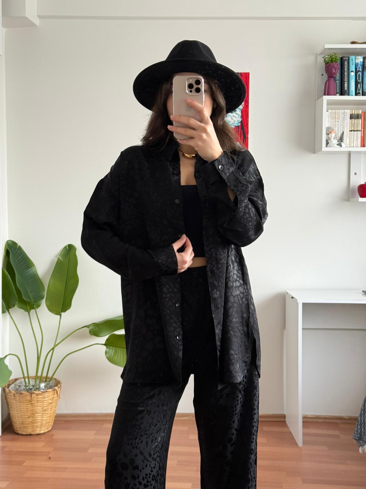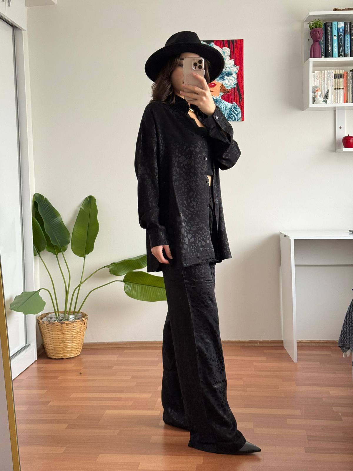 Premium Kalite Gömlekli Saten Takım (Siyah), modanın ince detaylarına önem veren modern bireyler için mükemmel bir seçenek. Rahatlığı, şıklığı ve kalitesiyle tüm gözleri üzerinde toplayacak bu takım, dolabınızın vazgeçilmez parçalarından biri olacak. Siz de bu özel tasarıma sahip olmak için siparişinizi hemen verin!