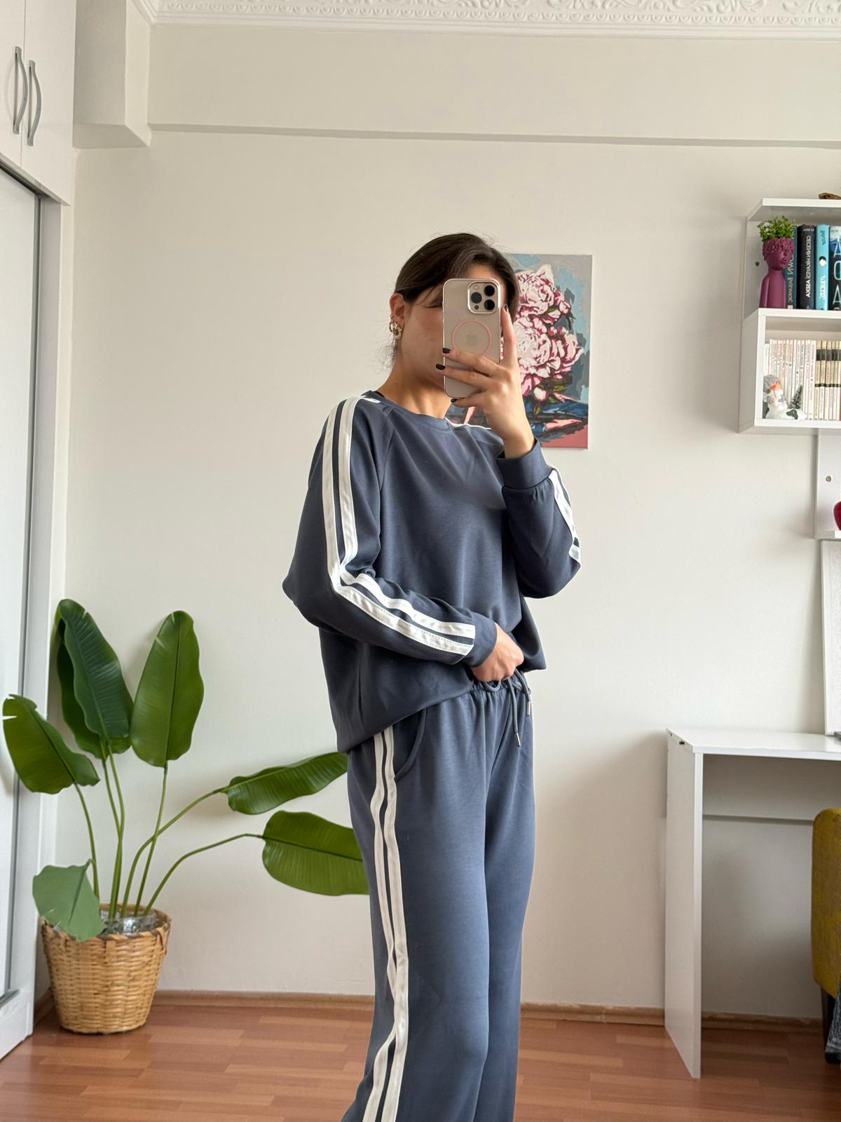 Şerit Detay Oysu Takım, özgün tasarım detayları ile farklı bir stil anlayışını benimseyenler için idealdir. Takımın üst kısmındaki ince şeritler, zarafetinizi ön plana çıkarırken, alt kısmındaki rahat kesim sayesinde günlük aktivitelerinizi rahatlıkla sürdürmenizi sağlar. Bu tasarım, hem genç hem de dinamik bir görünüm elde etmek isteyenler için mükemmel bir seçimdir.