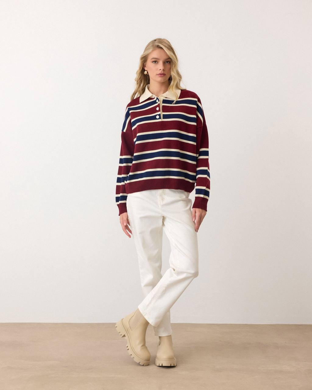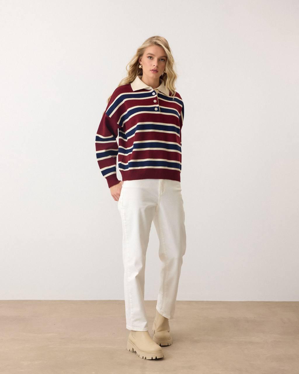 Modern bir görünüm sunan polo yaka detayı, klasik kazak tasarımlarına şık bir dokunuş katmaktadır. Bordo rengi, her türlü kombinle uyum sağlar; kot pantolonlardan, şık kumaş pantolonlara kadar geniş bir yelpazede kombinleme imkanı sunar. Bu kazak, gündelik hayatta rahatça kullanılabileceği gibi, özel davetlerde de şıklığınızı tamamlayacak bir parça olarak öne çıkar.