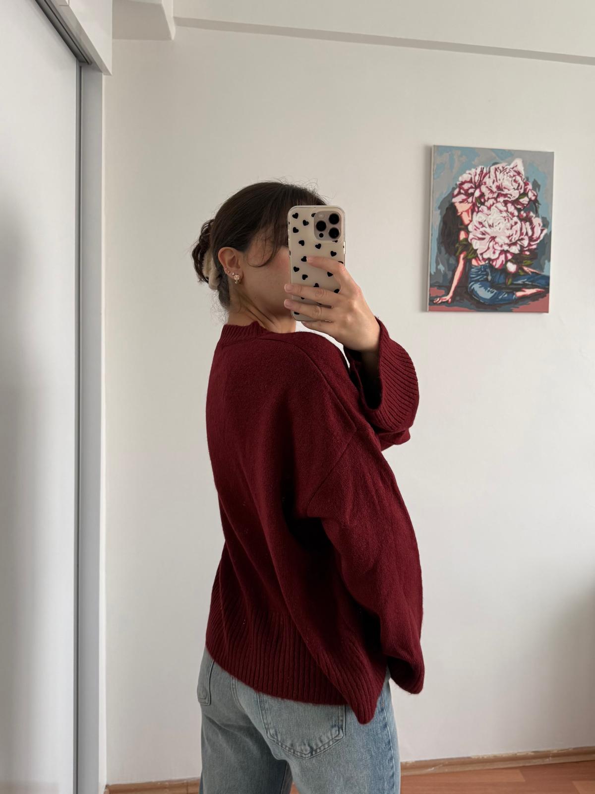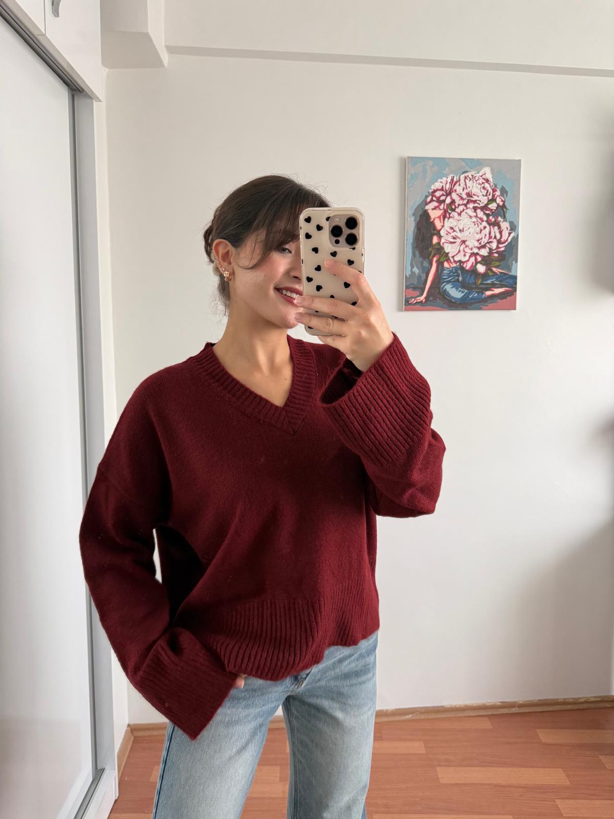 V yaka triko kazak - bordo, hem günlük hem özel günlerinizde tercih edebileceğiniz modern bir parçadır. Rahatlığı ve şıklığı bir arada sunan bu kazak, kış aylarında stilinizi tamamlamak için gerekli olanlardan biri. Şimdi, bu zarif kazağa sahip olarak kış modasına öncülük etme zamanı!
