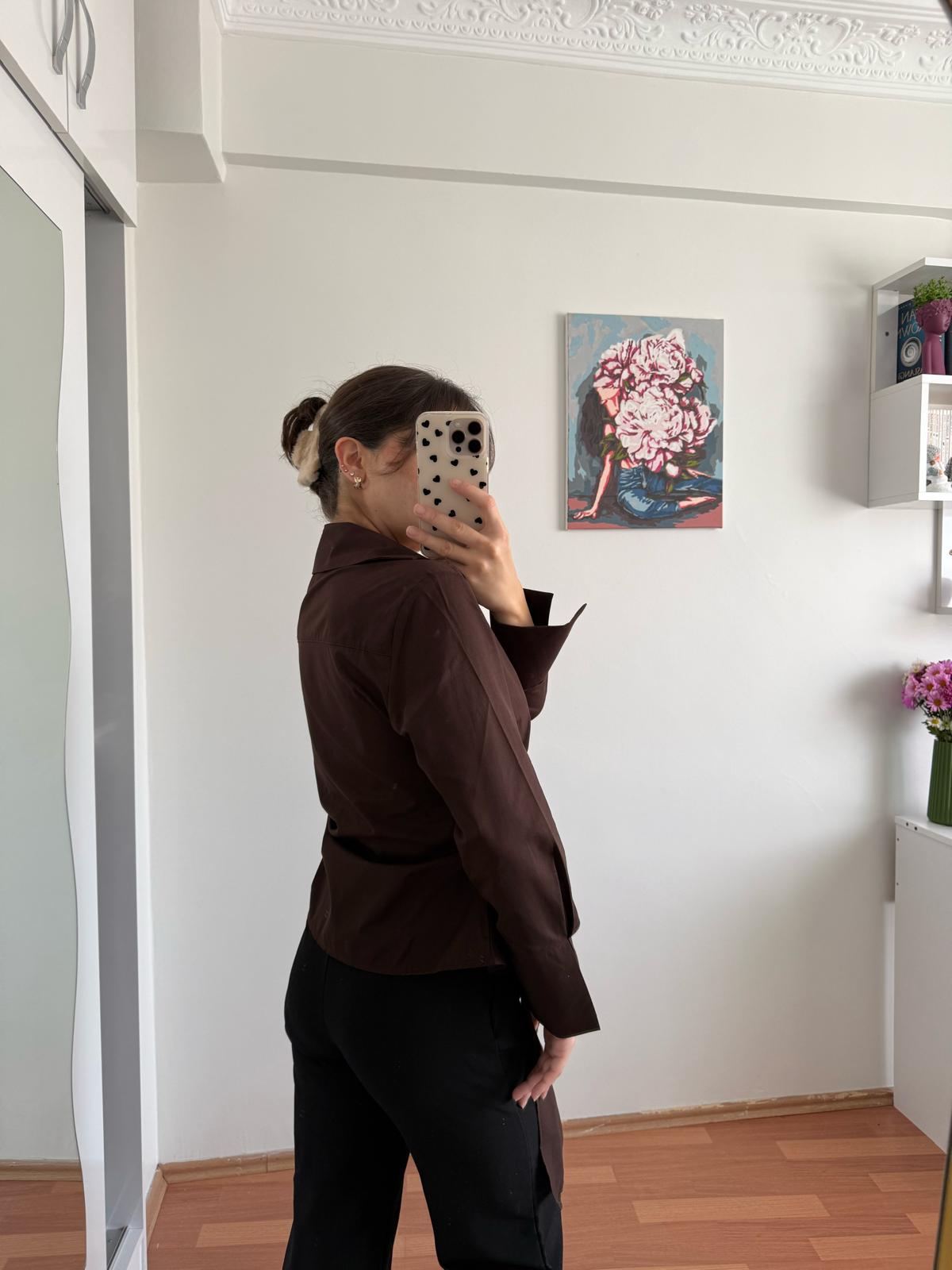Yandan Bağlamalı Viral Gömlek - Kahverengi